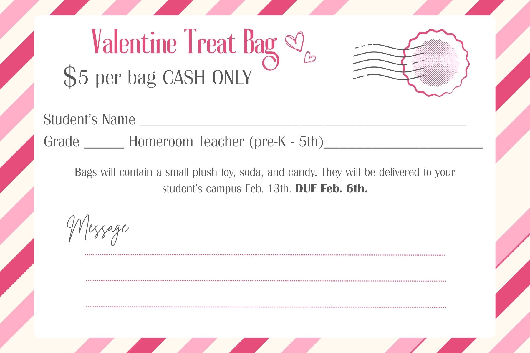 Valentine Treat Bag Fundraiser - benefiting Project Grad for the 2026 Graduating Senior Class. These order forms will begin going home with students on Tuesday, January 20th at all three campuses. ...